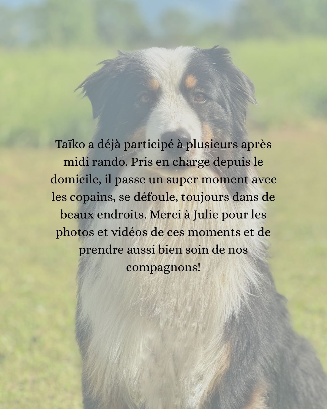 Les chiens évoluent en petit groupe (de 3/4 maximum si je suis seule ou de 7/8 si la rando est en collaboration avec d'autres pet sitter), afin que chacun se sente en sécurité et à l’aise. L'itinéraire est choisi en fonction des capacités des chiens inscrits !