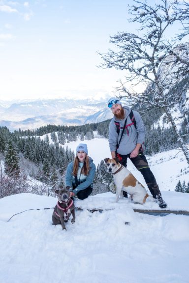 Je commence par la récupération de votre loulou à votre domicile comme pour une balade classique puis une fois que tout le monde est bien installé en voiture, direction les sentiers de Haute-Savoie pour une belle aventure au grand air !